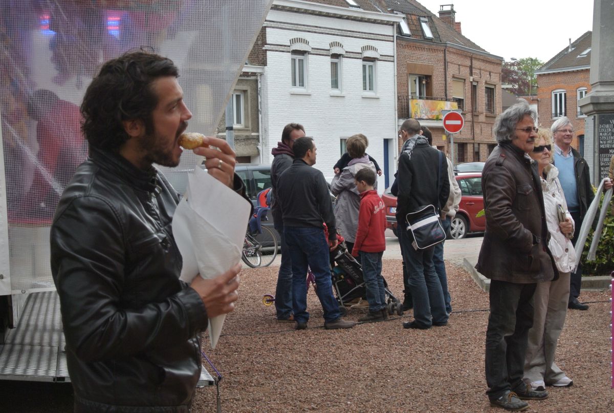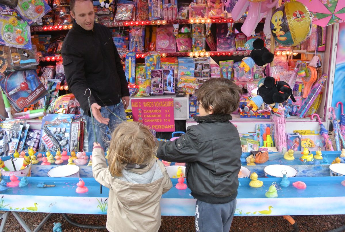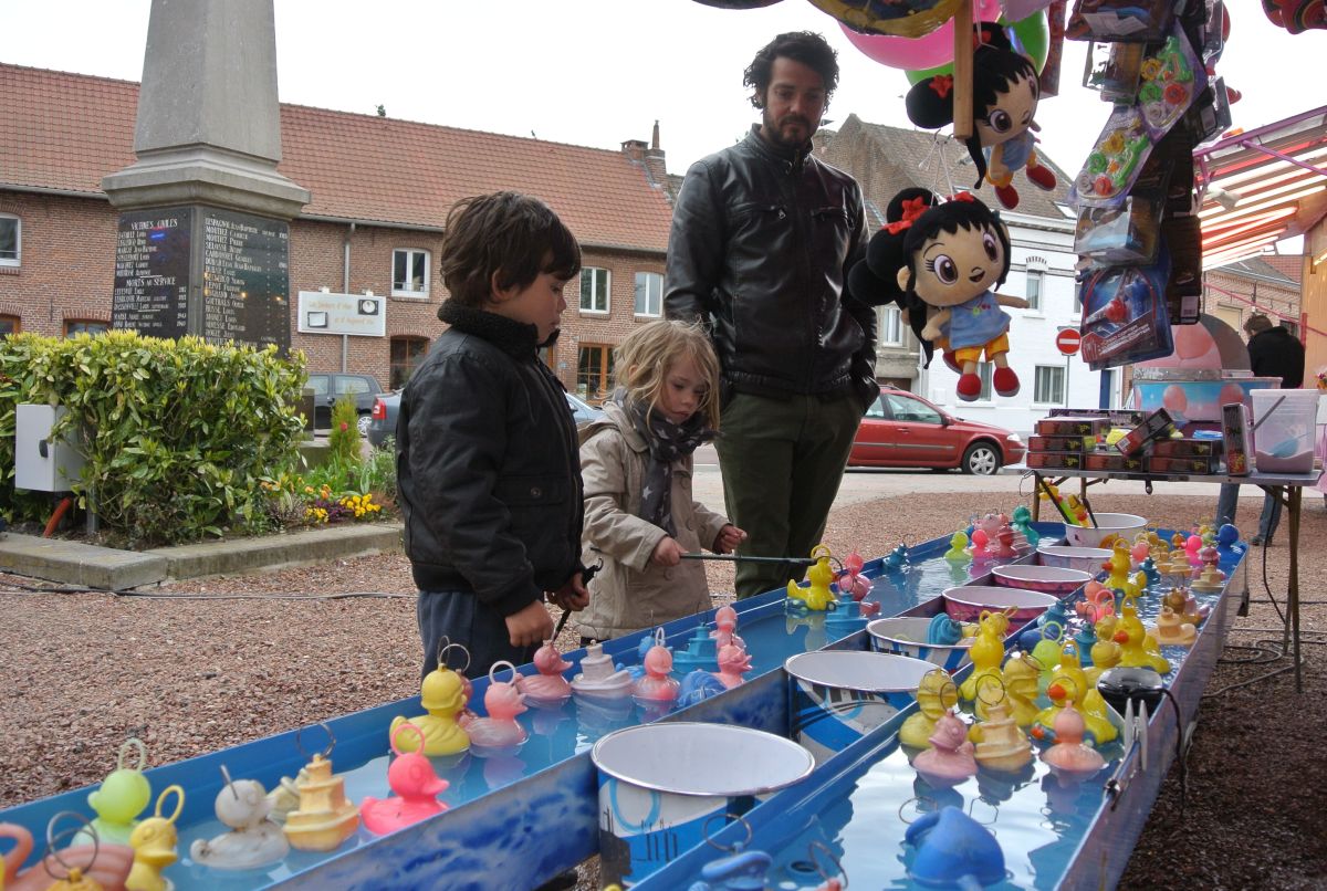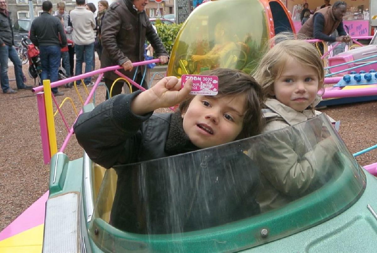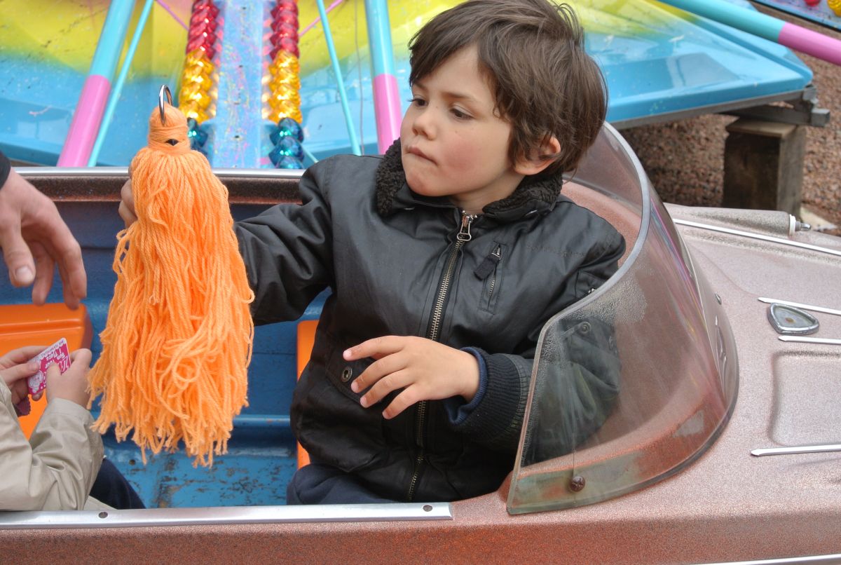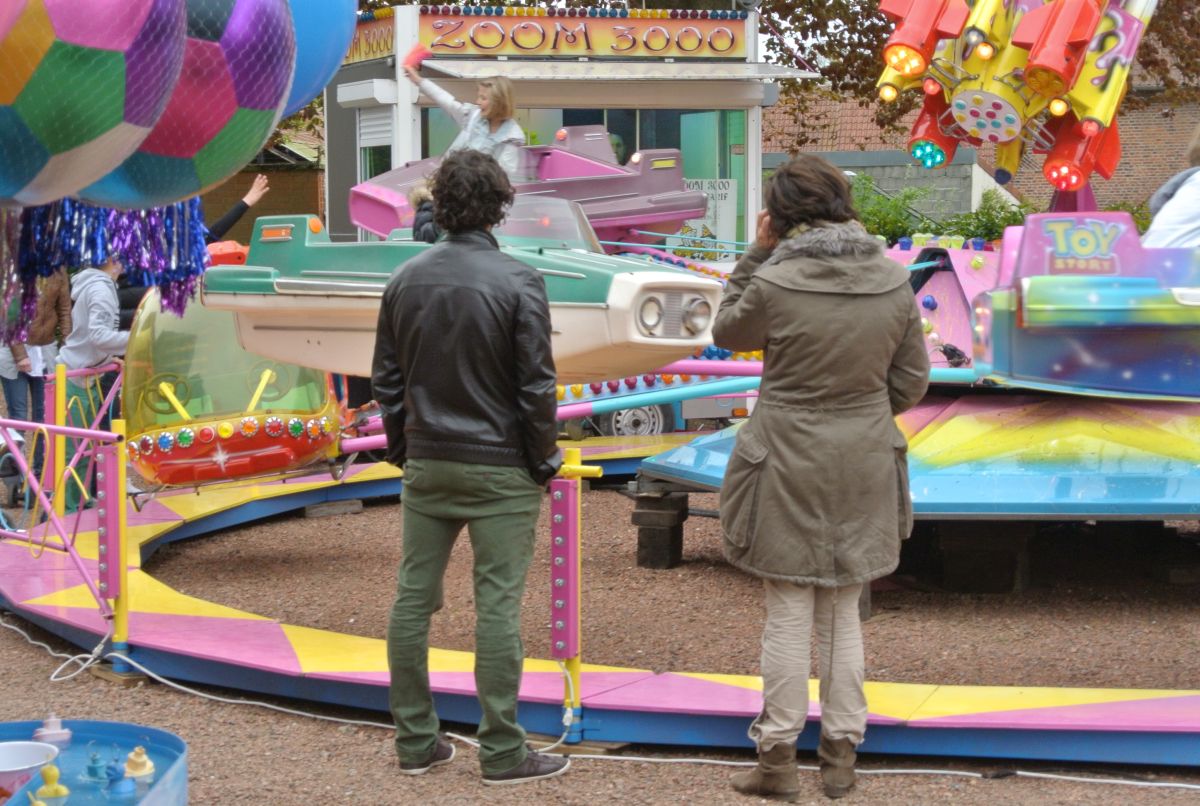 La ronde s’accélère Et tu cherches dans la foule Qui se presse et qui roule Le sourire de ton père PS : Si le père sourit c'est à cause des beignets. | ||